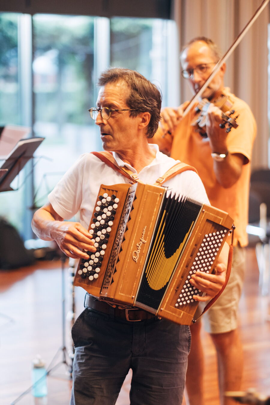 Ab 1988 erster Akkordeonunterricht, Teilnahme an diversen Workshops (u.a. mit Richard Galliano)